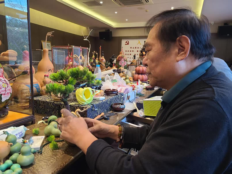 社区达人|朴素葫芦变身精美工艺品,“葫芦康”用镶嵌工艺为葫芦“点睛”