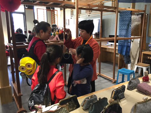 老北京翻花,孙奶奶亲制。翻花又名纸翻花、手翻花十八变花、十八翻等,是儿童喜爱、老少皆宜的传统益智玩具。孙奶奶的展台前,围拢了一圈又一圈的大小观众,“横翻、竖翻、甩翻,三个花三个球怎样组成,只要能想出来都是聪明孩子”。各种各样的答案,孩子们飞速的抢答,“一个月亮一个太阳”,“孩子们都是伟大的科学家”,孙奶奶和孩子们风趣幽默的对话,引来大家热烈掌声。毛猴,相传它是由药铺里一名小伙计发明的,因为那天他没有伺候好账房先生,所以挨了一顿臭骂,生气的他用蝉蜕做头和四肢,辛夷做身子,白芨做粘合剂,看起来像一个活生生的账房先生,他觉得这样实在太解气了,无意间第一个毛猴就诞生了。从毛猴的起源,到毛猴怎么制作?荣容老师娓娓道来,为小朋友们带来了寓教于乐的新体验。哇塞!当看到这么多的毛猴作品时,一位母亲非常激动。《鲁迅笔下的故乡》,这一件作品就耗时整整三个月,荣慧生老师向现场观众进行着详细的解读。等待着跟着民间艺人一起体验画糖画的队伍排的很长很长,门哲娟老师简直就没有喘息的机会;还有很多小朋友通过镜头观看许崇有老师表演的传统民间艺术拉洋片;幕布背后,孩子们零距离体验皮影戏操作……来自翠微小学的叶昕萌小同学,正在用闲熟的手法学习缠彩棕球、黄天娇同学在学习钩编技艺,还有很多叫不名字的同学、大小朋友们体验芒果制作、学习抖空竹、亲自动手捏面人、手绘风筝绘画等等,一位长者情不自禁地在原创布艺包展台前停下了脚步,他告诉我们,这不仅仅是一次民俗庙会,更是一场科技庙会。