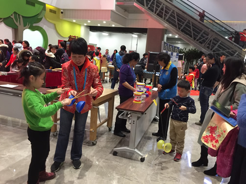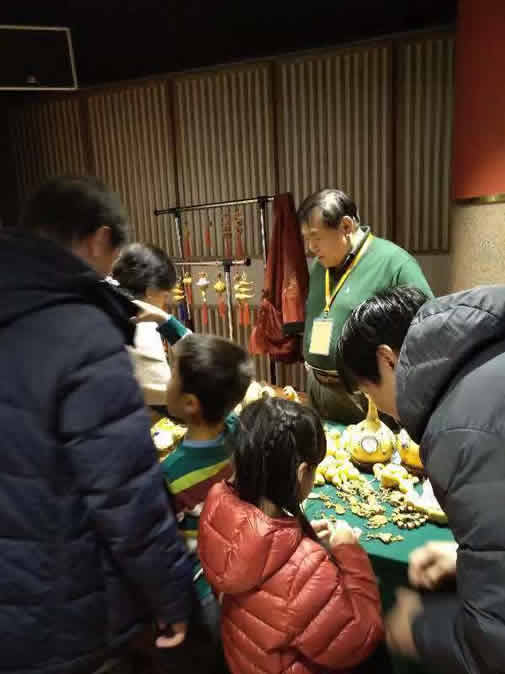 应中国宋庆龄青少年科技文化交流中心邀请,北京玩具协会组织了益智游戏体验、翻花、风筝、鬃人、毛猴、手编玩偶、剪纸、原创布艺包及玩偶、糖画、中国结和珠编、彩沙画、面塑、太平燕、吉祥鼓、水哨、风车、腊果、立体绘画、手绘、葫芦工艺、拉洋片、地球仪、魔方、七巧板、益智玩具培训、空竹、皮影等20多个门类,五十多位民间玩具工艺大师纷纷亮相、现场献艺、展示绝活。