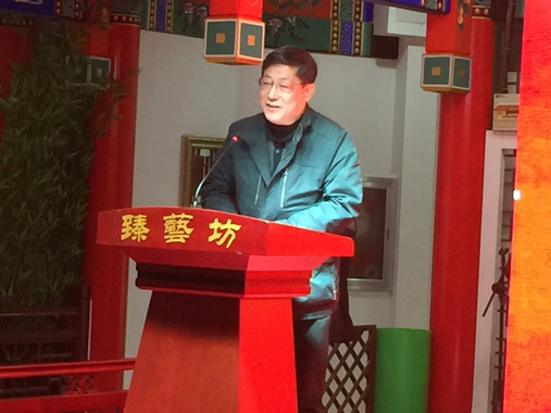 刘振钰徒弟代表余志忠、海淀区文化馆非遗办徐敏和北京玩具协会会长孙书仑等分别致辞。孙会长指出,在当前形势下,非物质文化遗产、还有传统的技艺,应该说有非常好的发展环境,党中央非常重视,各级政府的政策也非常优厚,大家赶上了好时候。他希望师徒共同努力,让空竹技艺更好的传承,把空竹文化发扬光大。