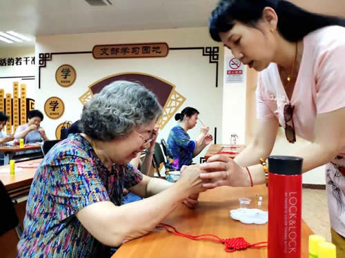 “学习内画有门槛,需要习者具有一定的美术基础。绘画时,用带有狼毫毛的细钩笔,以用毛笔时相同的方法蘸上墨水,伸入器物的瓶口作画。作画时需要‘正画反笔’,这样从外部看时才能看到正的画面,因此不但需要有美术基础,还需要经历一个思维上的适应过程”,谢珊珊老师,中国内画鼻烟壶国家级第四代传承人对着社区居民如是说。在今天的课堂上,居民们每一件内画作品的诞生,都充满了艰难与智慧,每一件内画作品都是独一无二具有纪念意义的珍品。