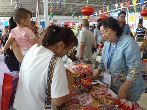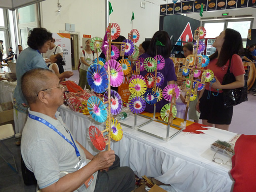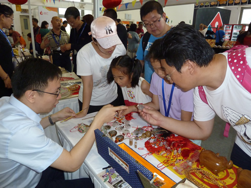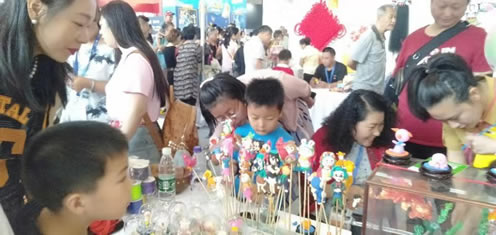 7月11-14日,第十届中国(北京)国际玩具教育文化博览会(简称:玩博会)在全国农业展览馆盛大举行。应中国玩具和婴童用品协会邀请,北京玩具协会组织风筝、皮影、原创布艺、葫芦工艺、糖画、内画、卵石画、面塑、泥塑、毛猴、剪纸、太平燕、蜡果、绳艺、工艺布鞋、鬃人、汉服折纸、老北京翻花、益智玩具等20几个门类40多位民间工艺大师现场献艺,展示绝活。