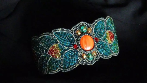 每一件手工珠绣作品在制作前都要经过构思、设计,把多种色彩的珠粒,由专业绣工精制而成。
