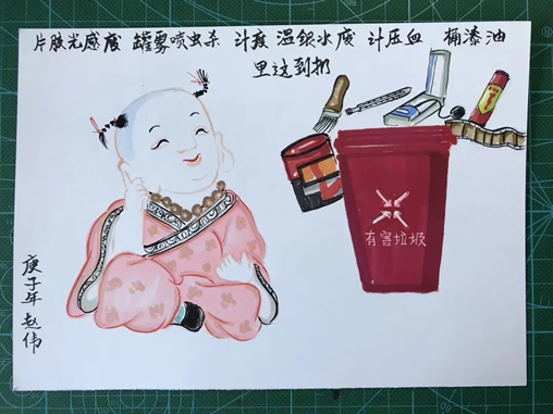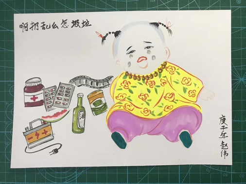 为了帮助大家牢记垃圾分类知识,全国最美抗疫家庭的赵伟老师精心制作了一系列垃圾分类宣传画帮助大家记忆,现在就让我们跟随赵伟老师的笔触再一次学习分类知识吧。