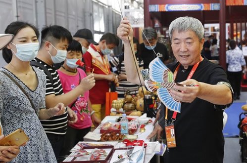 作为本届服贸会的重要组成部分,今年第十四届北京工艺美术展成为大会亮点之一。北京玩具协会选派了盛名已久的风筝、太平燕、葫芦工艺、蜡果、汉服折纸、面塑等六个门类的老北京民间传统工艺现场与观众互动,展示才艺,诠释了北京传统工艺与现代设计的完美碰撞。