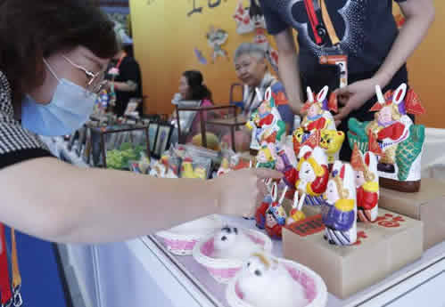 服贸会期间,市委书记蔡奇来到北京玩具协会风车展台。中央电视台财经频道、中新社、淘宝网等到协会展区拍摄、采访,并作了相关报道。看!这是赵铁民老师向参观者展示可以在室内放飞的风筝,这是观众在参观兔儿爷,这是面塑、汉服折纸互动体验。