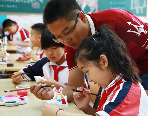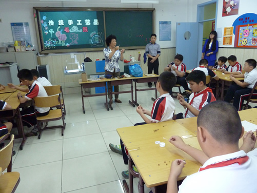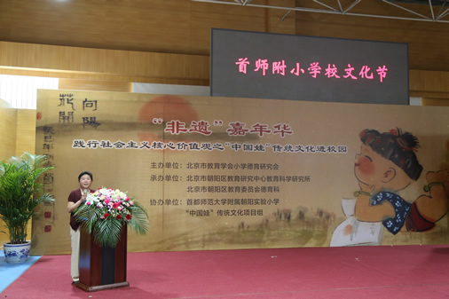 在我国第十一个文化遗产日即将到来之际,5月30日上午,一场别开生面、热闹非凡的“非遗”嘉年华——践行社会主义核心价值观之“中国娃”传统文化进校园主题活动在首都师范大学附属朝阳实验小学隆重举行。应该校邀请,北京玩具协会会长孙书仑、副会长钟伟以及风筝、豆塑、兔儿爷、毛猴、木板年画、太平燕、面塑、堆绣、万花筒、编结、益智玩具等十多位北京民间玩具工艺大师走进校园,带领孩子们,玩中学,体验传统文化的魅力!