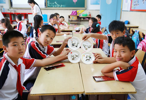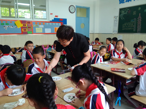 综合楼科学教室1班,编结吴秀莲老师特意为孩子们准备了五彩绳手链,迎接端午节的到来。她说,为孩子们系五彩绳是端午节的重要习俗,它有祈福纳吉的美好寓意。看!传统节日端午节包粽子的同学们还真有模有样呢?