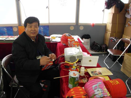 活动期间,札幌市政府为我们这些来自北京非物质文化遗产传承人安排了现场表演。当北京市政府新闻办公室主任王惠女士带领札幌市副市长小泽正明先生来到我们展位前参观时,我向市长先生简单介绍了中国民间花灯的制作过程。他听了我的介绍后很高兴的说:“我们日本也有提灯,而你做的灯我没有见过,很漂亮。”我当即送给市长一个带有福字的灯,希望能为他送去祝福。他接过后非常高兴说:“谢谢你,也谢谢你的灯,给我带来福气。”