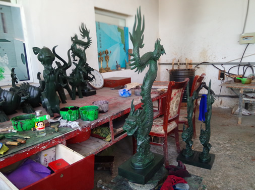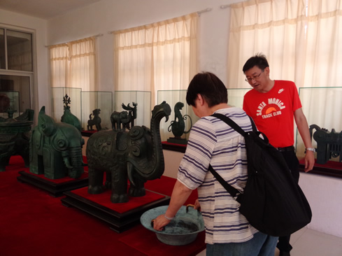 随后,孙会长一行驱车赴北京华兴达青铜雕塑艺术有限公司考察,大家参观了该公司的青铜器复制加工厂,欣赏观看了陈列室的作品“三羊尊”、“马踏飞燕”、“三星堆面具”等,并听取了华兴达李万祥总经理对公司发展历程和未来规划的设想。华兴达二十余年间铸造的青铜艺术品遍布大江南北长城内外,获得无数奖励和荣誉,令参观者赞不绝口。