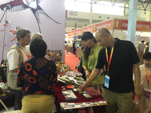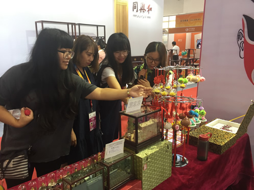 文博会上,70多岁高龄的国家级非物质文化遗产传承人、北京面塑大师郞志丽呈现给广大观众的吉祥娃娃、戏曲人物、八仙过海等作品,征服着每一位观众,老人家对面塑艺术的敬业态度,尤其令人感动。石画,是北京民间工艺品,它以河卵石为载体,利用石头的外形和弧度在上面作画。孙宝玲老师的卵石画,赢得现场观众赞扬和喜爱,一拨又一拨的回头客,最后还是把有收藏价值的《观音》作品给请走了。原创设计手工布艺今年首次参加文博会,同样吸引了不少年轻观众,瞧!张小谢女士现场购买手工包后一定要与艺术家吴巧云老师合影留念。还有为备战文博会大师们提前准备的真翡翠景泰蓝葫芦钟表,新作品绒鸟小球鸡……大家近距离的观看了传统手工艺文化气息浓厚的老北京民间工艺制作过程,为展会增加了观赏性和趣味性。