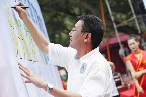 副会长、秘书长钟伟在文化节“创城”活动中代表北京玩具协会签字。