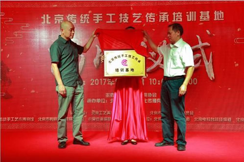 9月26日上午,北京传统手工技艺传承培训基地揭牌仪式在北京汇诚六艺国学馆举行。中国文联民俗办公室主任张志学、中共北京市委社会工作委员会社会组织工作处副处长陈权余、北京工艺美术行业发展促进中心主任盛景涛、北京玩具协会会长孙书仑、北京市关心下一代工作委员会、北京市民间组织国际交流协会等领导以及北京民间工艺大师、朝阳区中学校校长100多人参加了此次揭牌仪式。