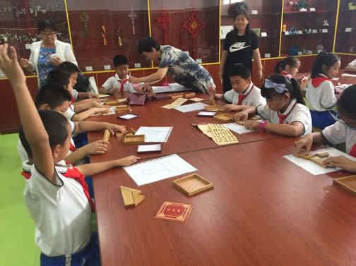 席间,来自北京市朝阳区十八里店中心小学的学生们体验了面塑、脸谱、七巧板的手工艺课程,他们发挥丰富的想象力和创造力,在大师们的指导下,完成了自己的手工艺作品。学生们不仅体验到动手的乐趣,更加感受到传统手工艺的文化魅力。同时手工艺体验课程的开展,有助于传统手工艺的传承与发展。