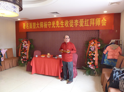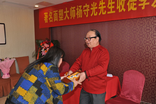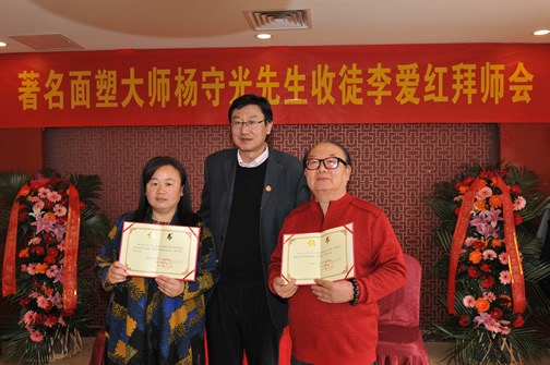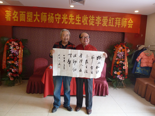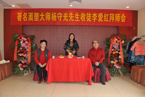 2017年3月11日上午,北京民间玩具工艺大师、面塑艺术家杨守光收徒李爱红拜师仪式举行。来自北京民间文艺家协会、北京玩具协会等有关领导和民间工艺美术界人士20多名嘉宾到场祝贺。