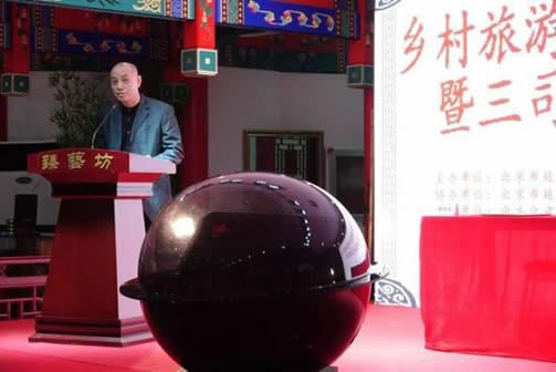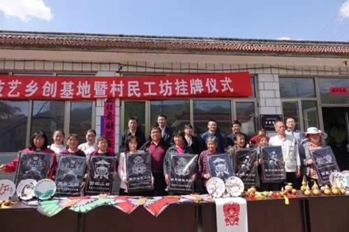 当天下午,“传统手工技艺乡创基地暨村民工坊”挂牌仪式在延庆井庄镇三司村村委会举行,北京玩具协会孙书仑会长为三司村颁发“传统手工技艺乡创基地”牌匾。