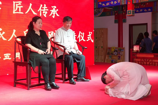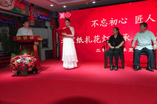 2018年5月25日上午,东城区北京纸扎花灯代表性传承人、灯彩艺术家邱志刚,北京市海淀区非物质文化遗产保护项目空竹传承人、北京民间玩具空竹技艺·收藏大师刘振钰收徒拜师仪式在北京传统手工艺传承培训基地(北京传统手工艺术博物馆)举行。北京玩具协会会长孙书仑,副会长、秘书长钟伟等有关领导和民间工艺大师40多名嘉宾作为见证人到场祝贺。