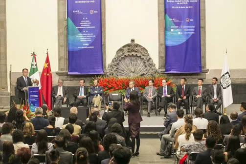 开幕式在来自北京文创周丝竹乐团艺术家的茉莉花茶及墨西哥著名的《鸽子》优美的乐曲中开幕,北京市副市长王宁、墨西哥城市长阿米瓦先后致词。
