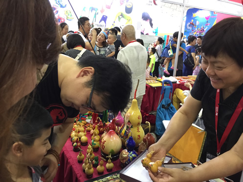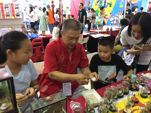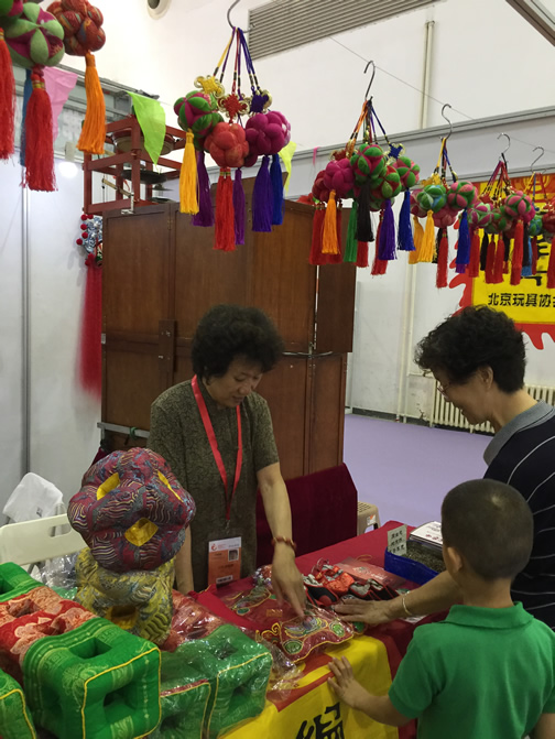 当一位中年男子看到北京玩具协会展区与众不同的风格、与众不同的文化,他说:老北京的传统玩意儿,我就喜欢这里的东西。他停留在每一个展台前拍照摄像,并通过微信向朋友圈发送。年轻的父亲抱着1岁多的女儿,指着以假乱真的蜡果:想吃吗?可爱的宝贝真的要过去吃呢。3岁半的童一鸣小朋友不停地在蛋雕展台前徘徊走动,左摸摸、右看看,到底捧回了一枚生肖狗送给爷爷。
