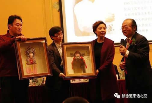 过去的那个脸谱啊,实际上只是局限于一个脸,但京剧艺术啊,是一个综合艺术,它包括了很多门类,比如说京剧的剧装,剧装按过去来说,是京绣,京绣是燕京八绝之一。包括把子,京剧盔头,等等,这些拿出来,都是工艺品。你怎么样把京剧更全面的体现。