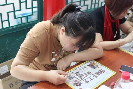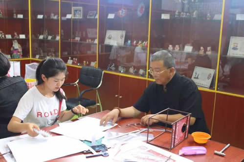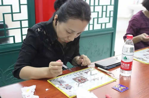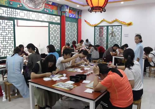 方庄教育集群的教师代表们首先参观了博物馆,欣赏了泥塑、脸谱、面塑、挂件等各式各样的传统手工艺术品,随后,大家积极参与手工艺体验活动,有的教师选择体验珐琅工艺——点蓝,还有的教师选择制作走马灯。