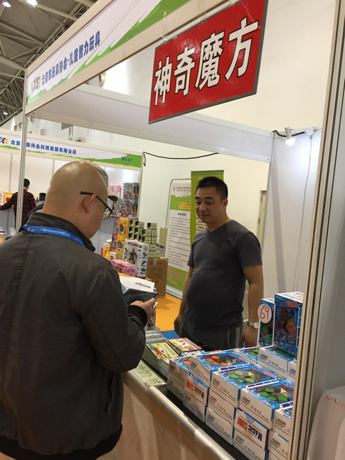 应北京南北展览有限公司邀请,北京玩具协会组织会员参加了这次盛会,十多位民间工艺大师带来了十个艺术门类、历史悠久的民间传统玩具,非遗大师现场表演捏面人、吉祥鼓铁燕子、北京传统风筝、北京传统风车、北京鬃人,并热情向到场的观众介绍、展示葫芦镶嵌工艺、卵石画、神奇魔方、布艺包、手工勾编儿童玩偶的制作和绘画艺术……成为此次展会上的亮点和特色,是少年儿童素质教育不可或缺的板块之一。